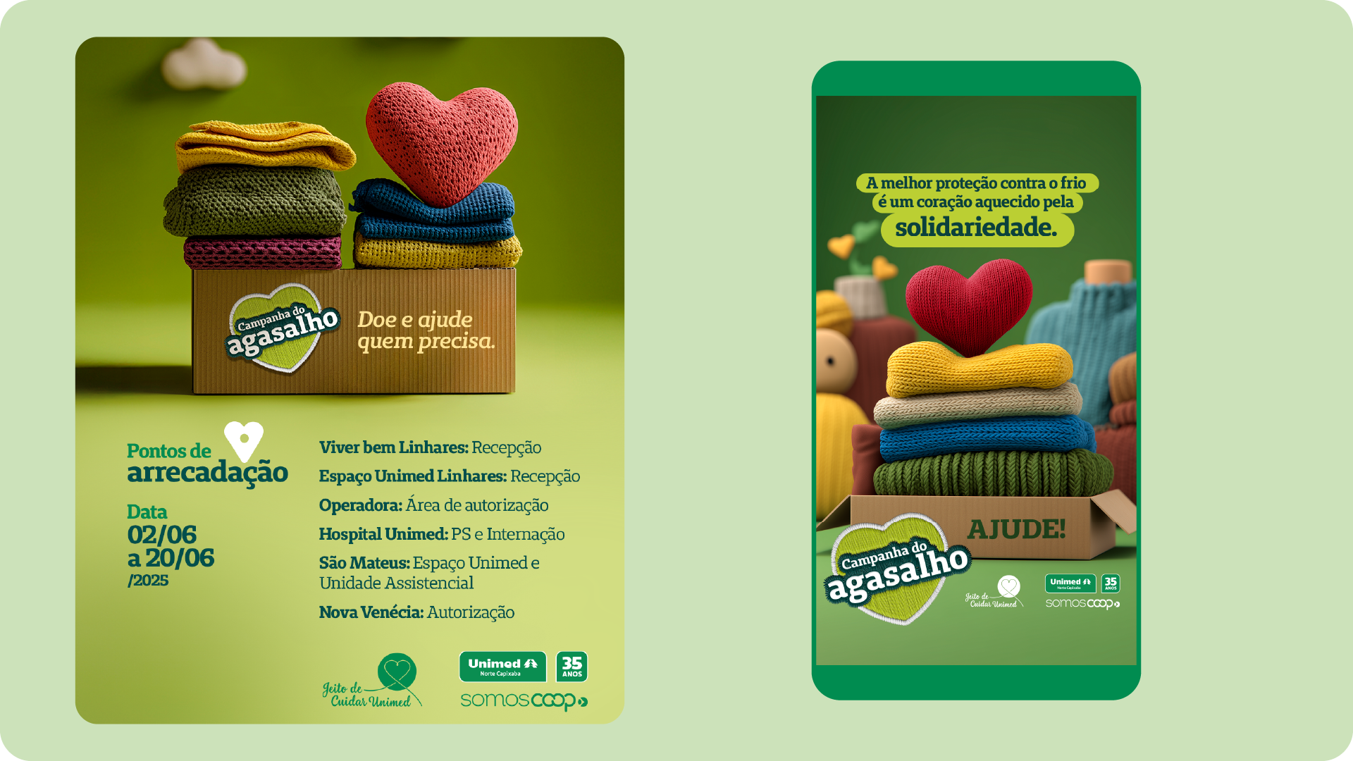 A Campanha do Agasalho reforça o compromisso da Unimed de cuidar não apenas da saúde física, mas também do bem-estar social. No inverno, muitas pessoas enfrentam o frio sem condições adequadas, e cada doação fala que ser solidário é algo que faz bem para quem doa e para quem recebe. Afinal, cuidar da comunidade é parte essencial da nossa essência cooperativa.